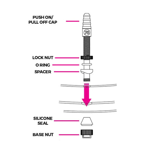 76 Projects Hi Flow No Clog Tubeless Valves Size 2 (30-50mm) Magenta