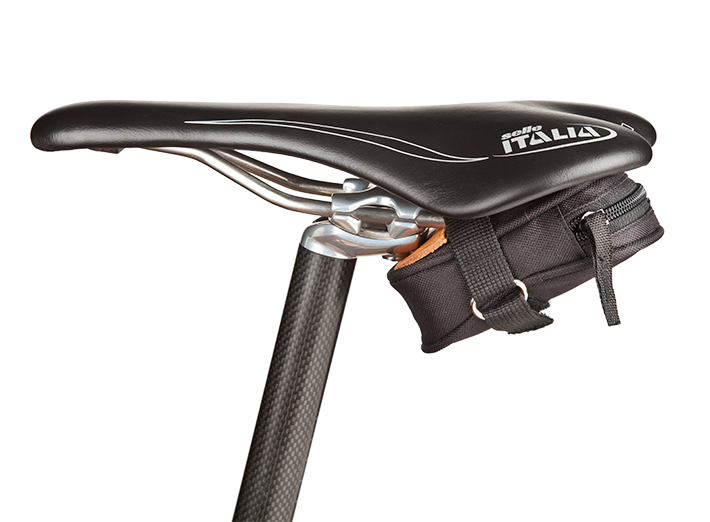 The Uno is small, only big enough to carry the basics for a flat change. The Uno has a very small footprint under the saddle and weighs almost nothing. 25 cu in., It has only enough space for a road inner tube plus gas and maybe a couple of Allen wrenches. It also fits under the saddle nicely when cinched tight. It rides horizontally while our other bags hang vertically.